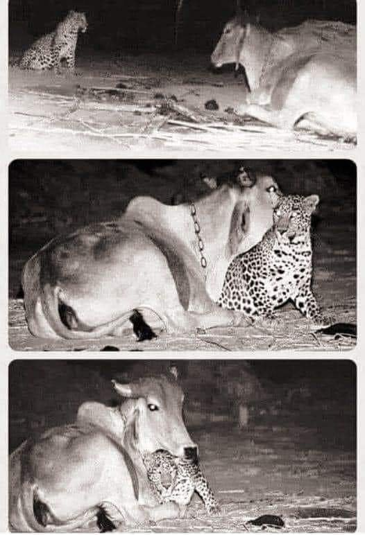 The man spoke with the previous owner of the cow and found out that the leopard’s mother had died when it was only twenty days old and since then the cow had fed the leopard with her milk. Therefore, the leopard thinks that the cow is her mother and comes every night to see her.